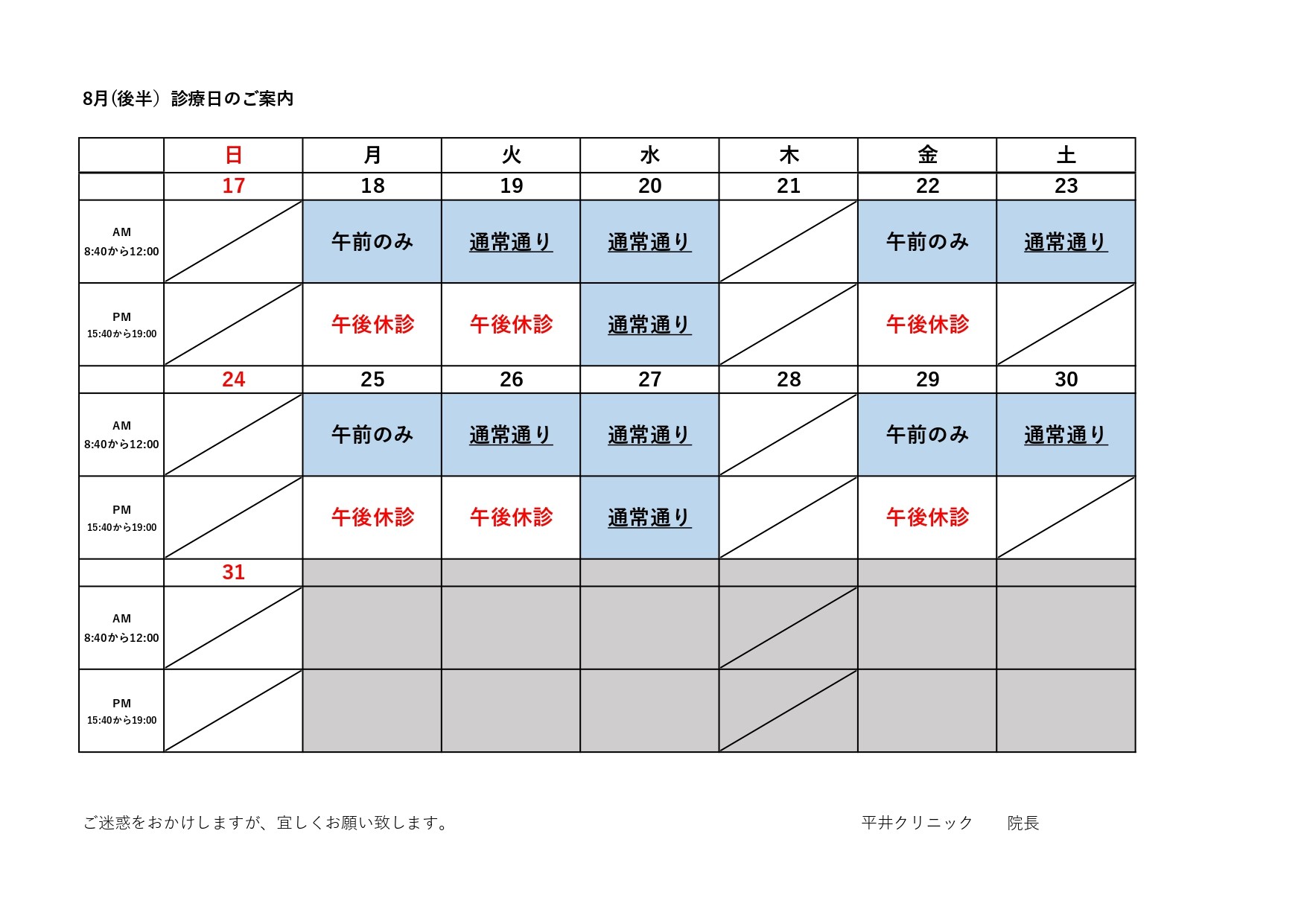 診療時間8:40~12:00 /15:40~19:00