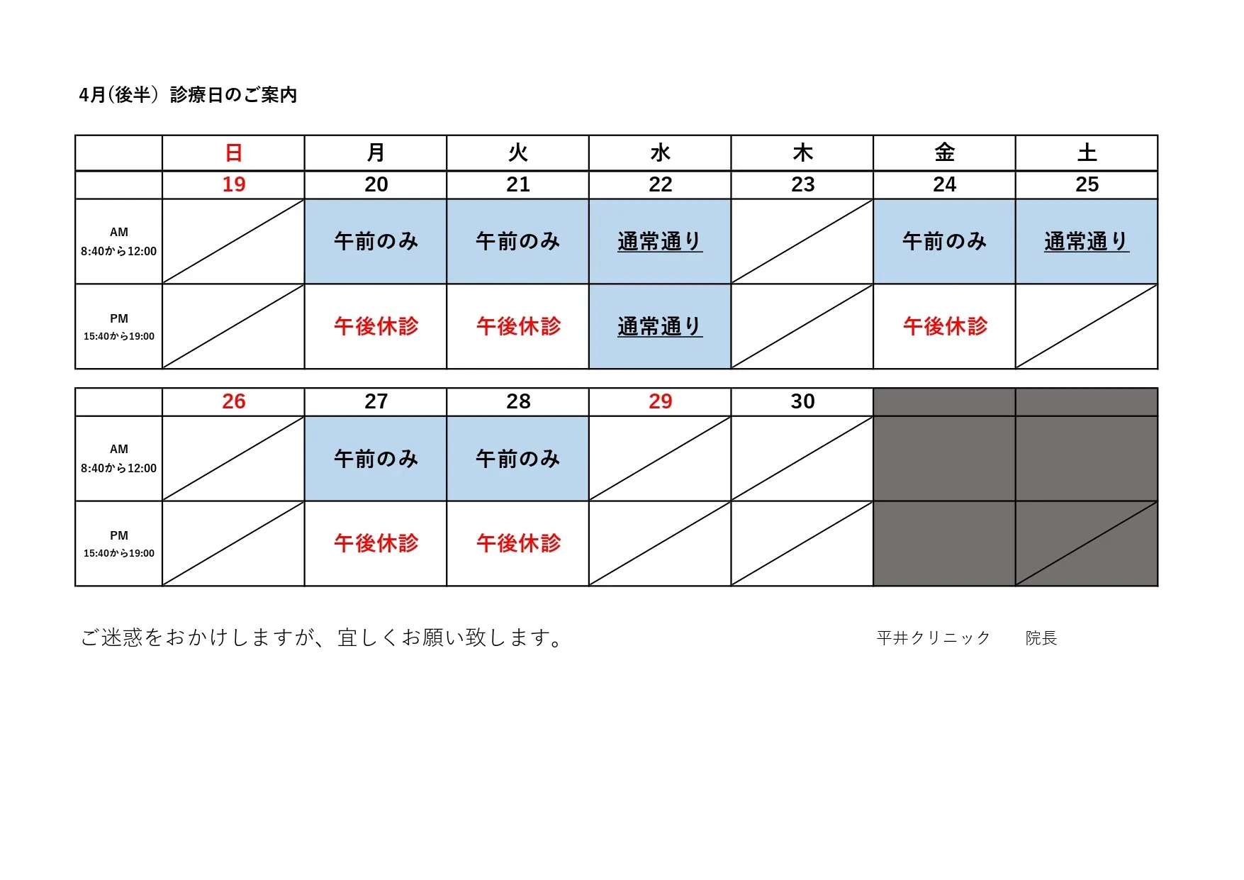 【診療時間】8:40~12:00 / 15:40~19:00 【休診日】木曜 / 土曜午後 / 日曜祝日